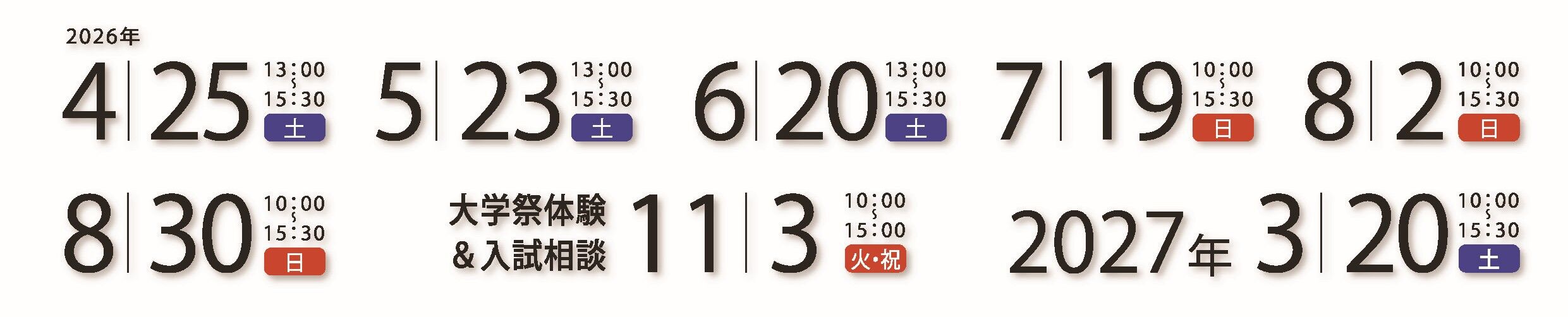 2026年度 オープンキャンパス 開催日程
