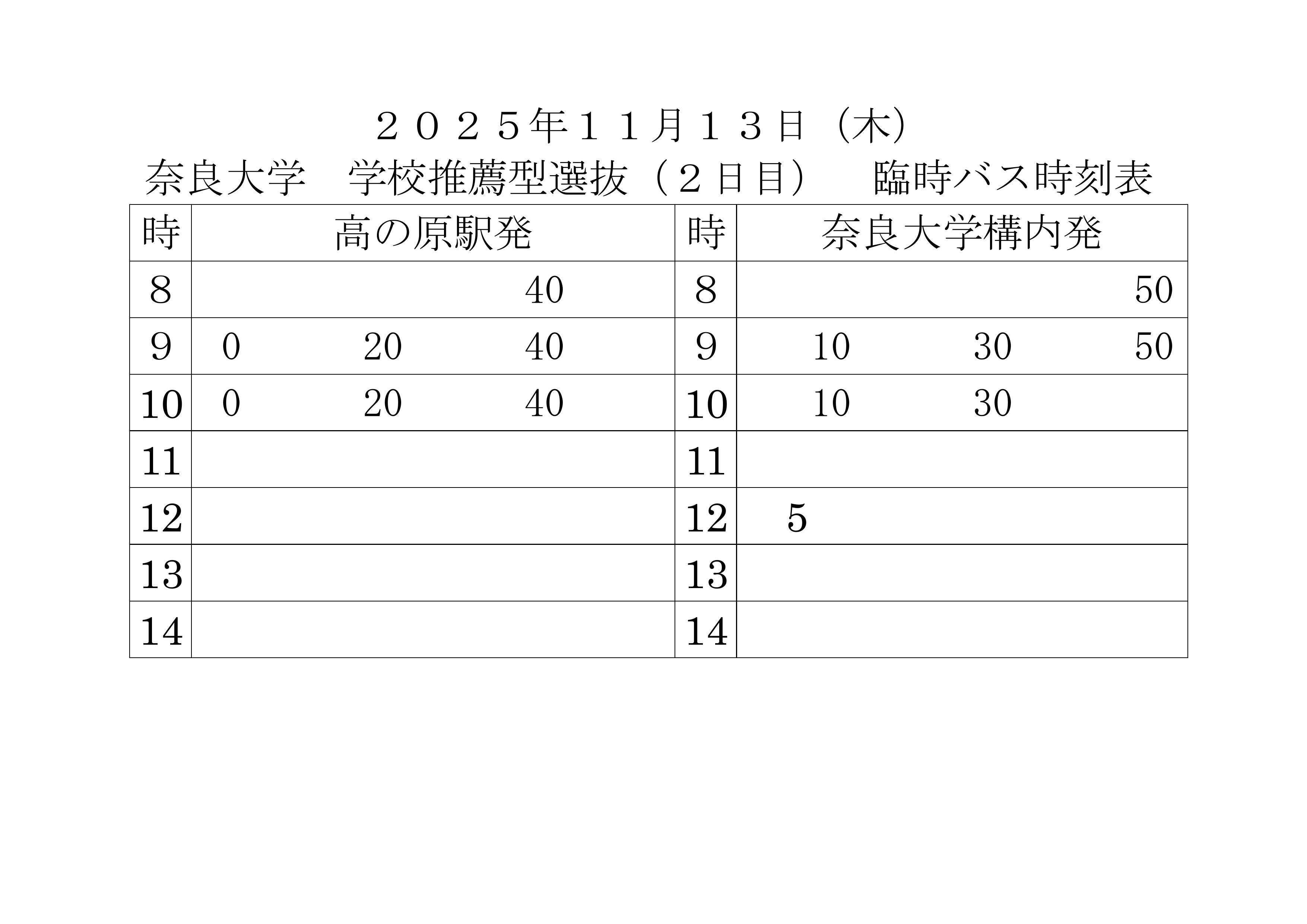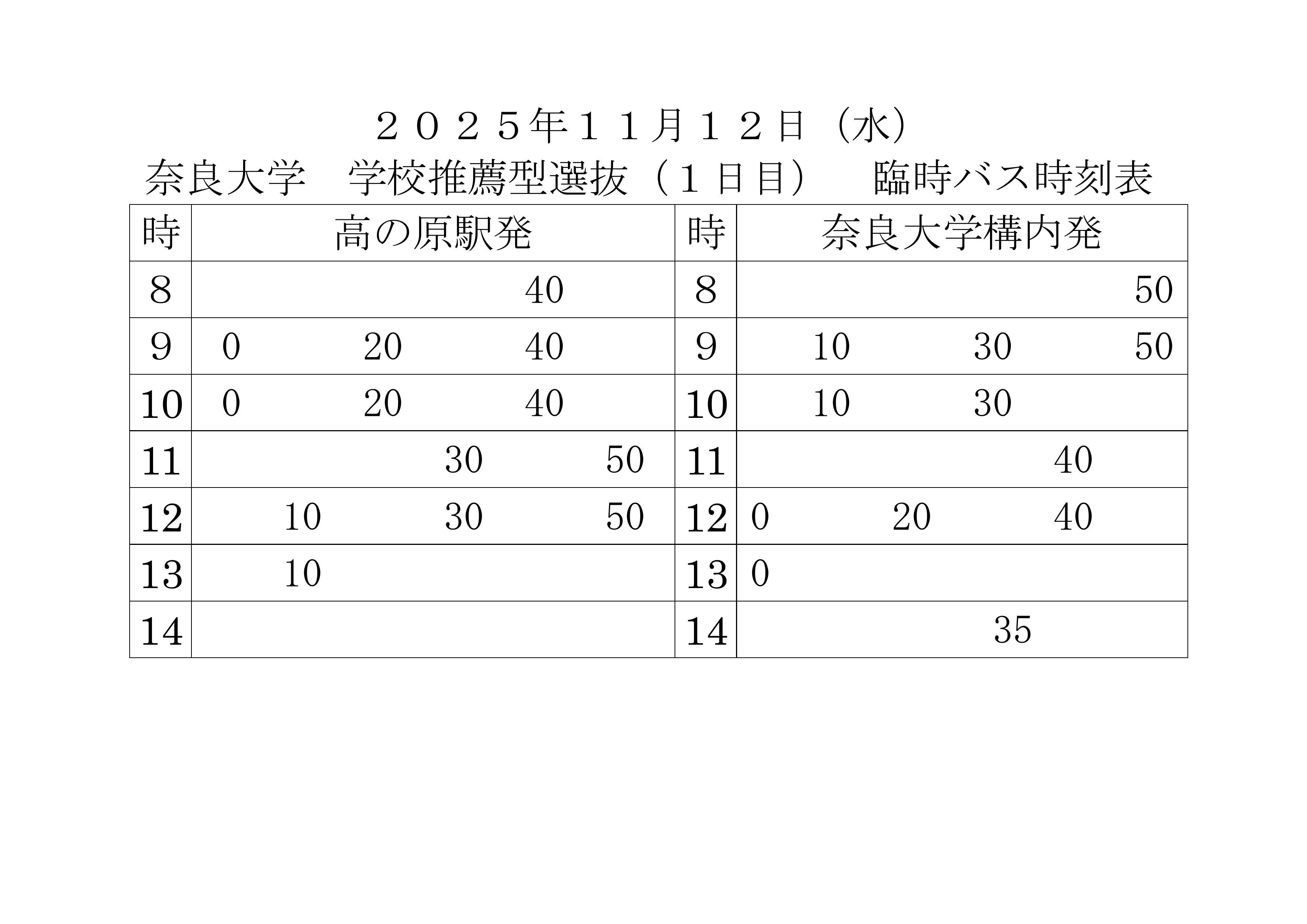 近鉄高の原駅から本学まで無料臨時バスを以下の通り運行します。