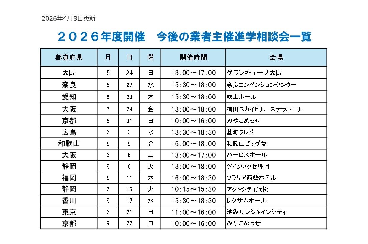 2026年度開催 業者主催進学相談会のお知らせ