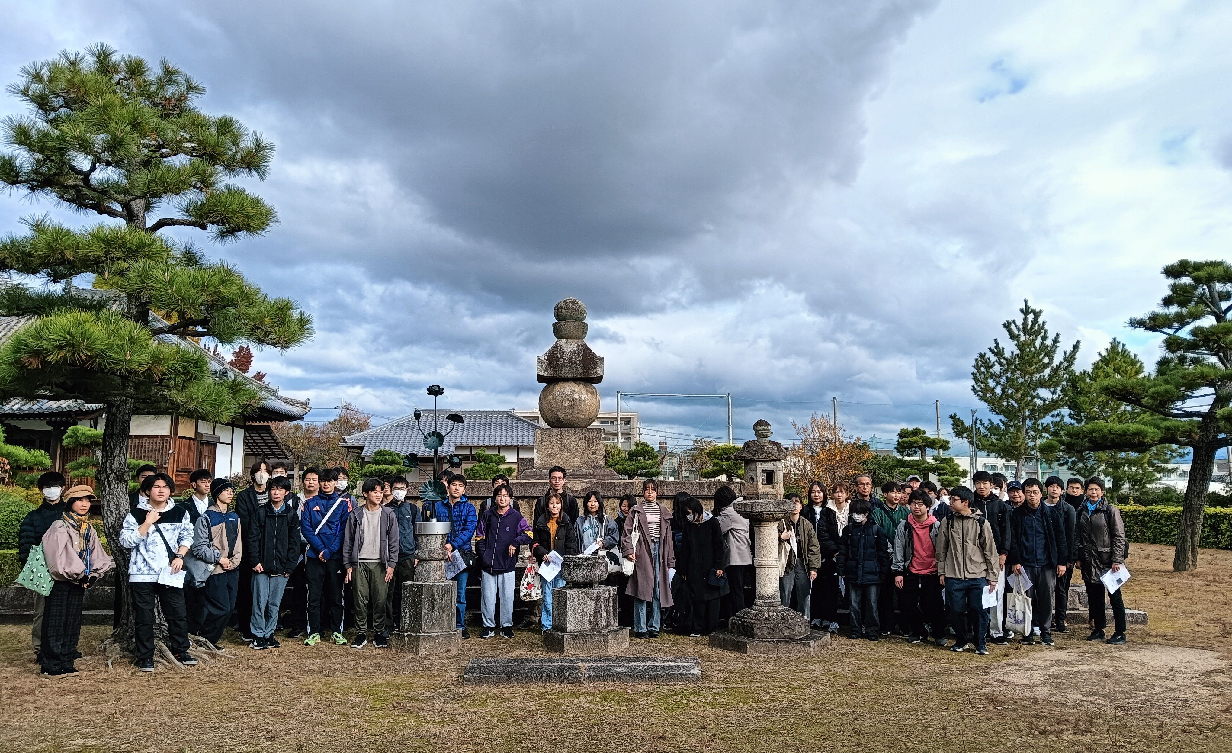 考古学概論Ⅱと史料学概論Ⅱの合同学外授業で西大寺から秋篠にかけての地域を巡見しました。西大寺や秋篠寺が伝えてきた中世の絵図には、この地域のかつての土地利用の状況や、今に遺る史跡の情報が記録されています。巡見では、先生方からそれらについての説明を受けながら歩きました。土地の起伏を利用した灌漑用の溜池やその痕跡、鎌倉時代に西大寺を復興した叡尊を供養する五輪塔、称徳天皇の山陵として有力視される高塚町の鷹塚山、秋篠寺境内の東塔の礎石や古代以来守られてきた香水井(井戸)などを見学しました。自分たちの目と足で確認しながら歩くことで、大学の近くの歴史をしっかりと感じ取ることができましたね。