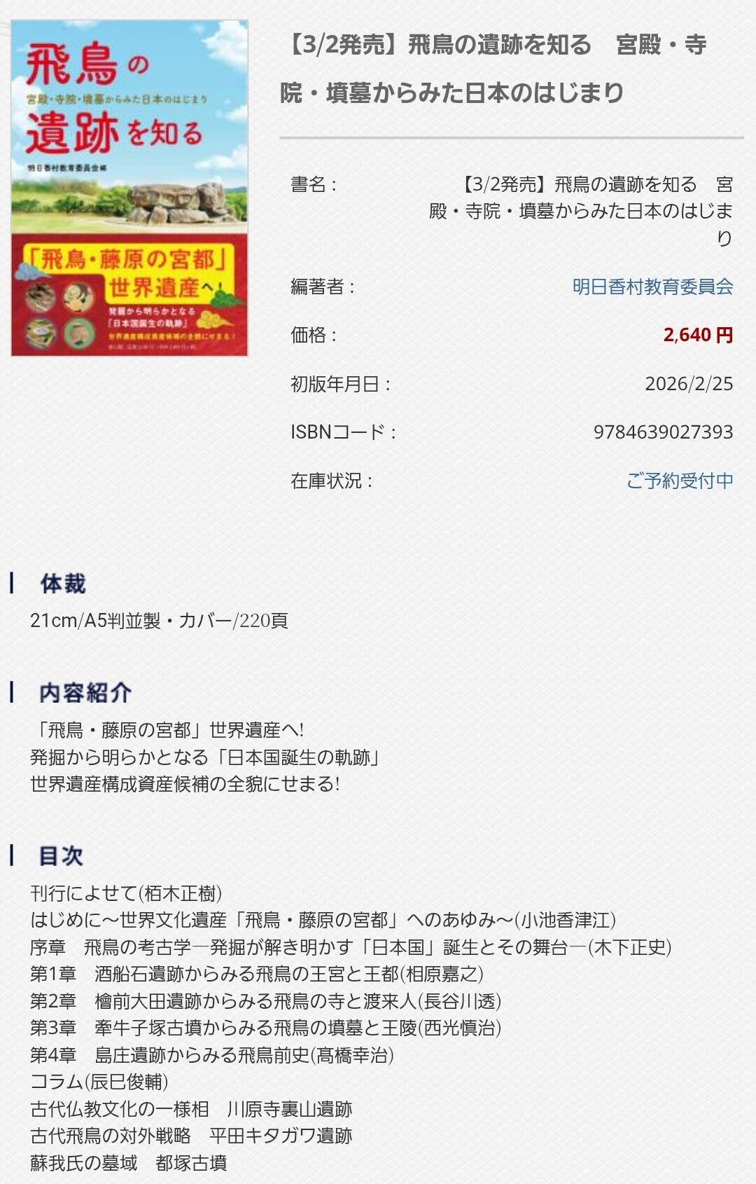『飛鳥の遺跡を知る』を刊行