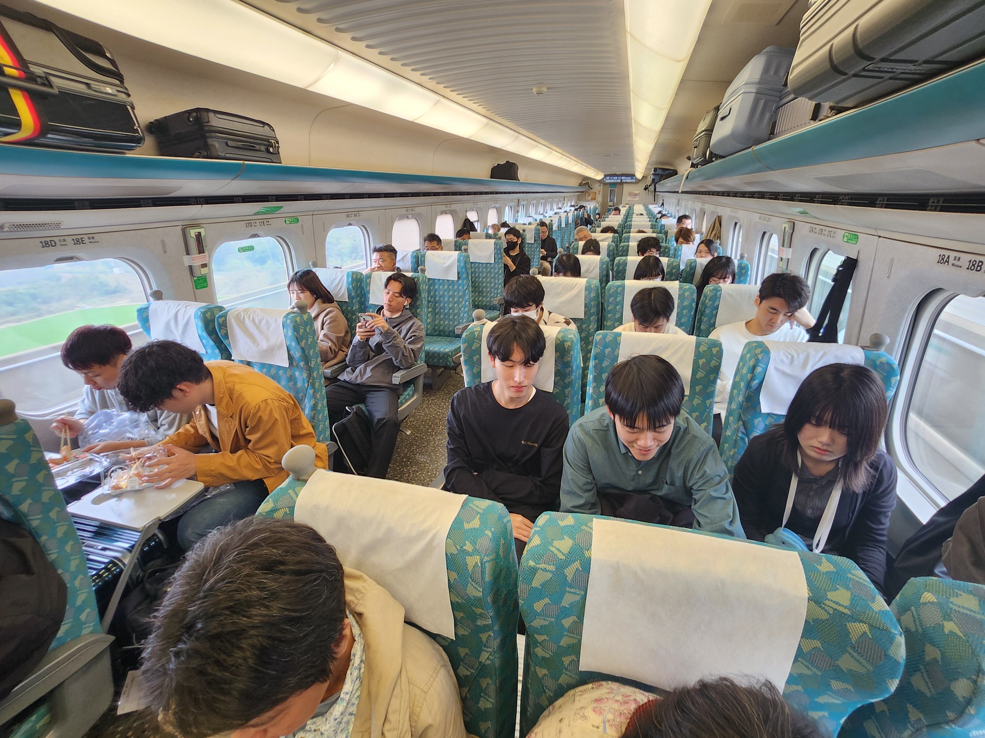 その後、台南から新幹線に乗って台北まで1時間45分。台湾の新幹線は、日本のシステム・技術を輸入しているので、カラーリング以外は日本の新幹線と同じ。