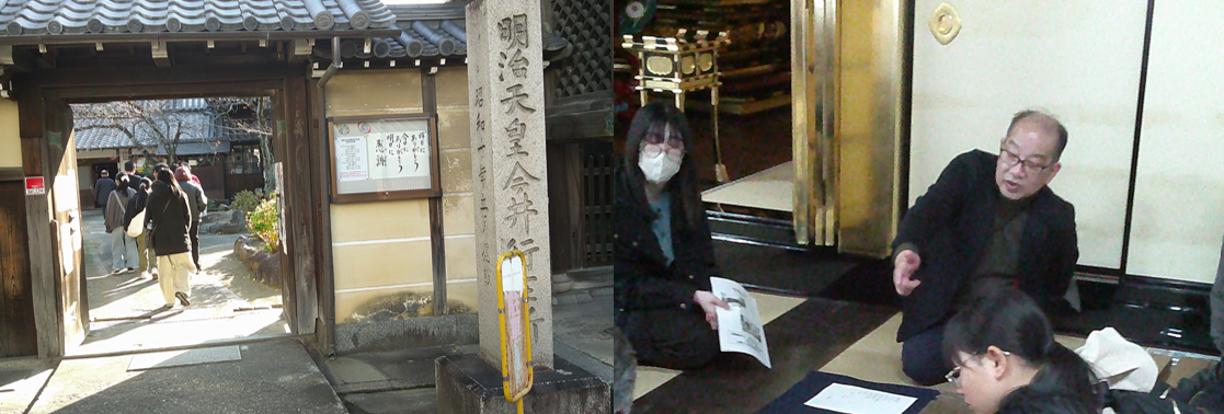 午後は、橿原市今井町を訪れ、まちなみ交流センター「華甍」で、戦国時代に築かれた大規模環濠集落で寺内町とされる今井町の概要についての展示を見学するとともに、同センターの建物が、大正天皇成婚記念の下賜金で高市郡教育博物館として建設されたものであることも確認しました。