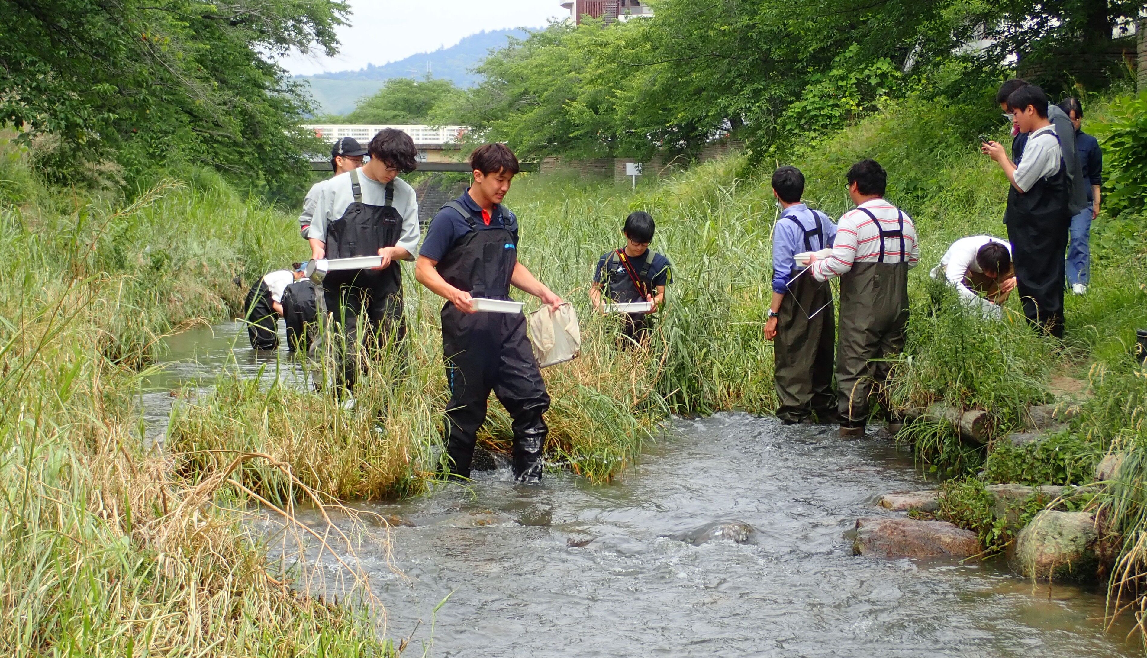 地理学科など本学の学生が野外調査で奈良県初記録! 佐保川でミナミテナガエビ を採集しました