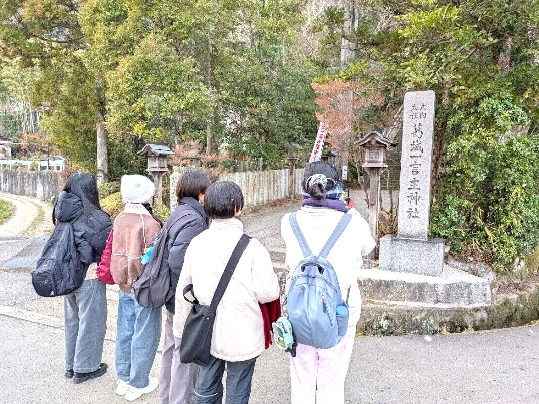 1月25日(日)に、授業「実地見学踏査」で葛城山、一言主神社を巡りました。担当は鈴木喬先生(専門:上代文学)です。